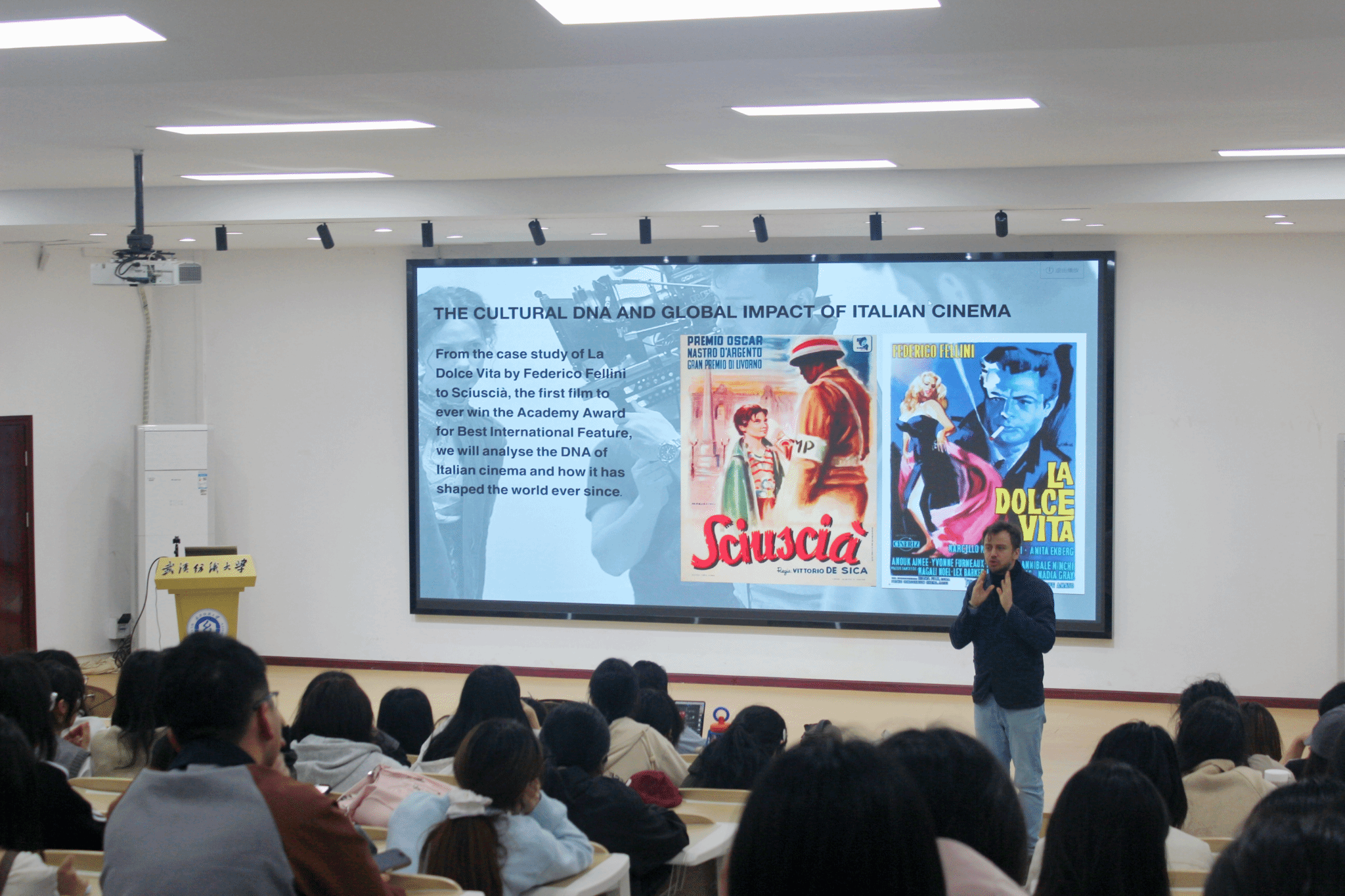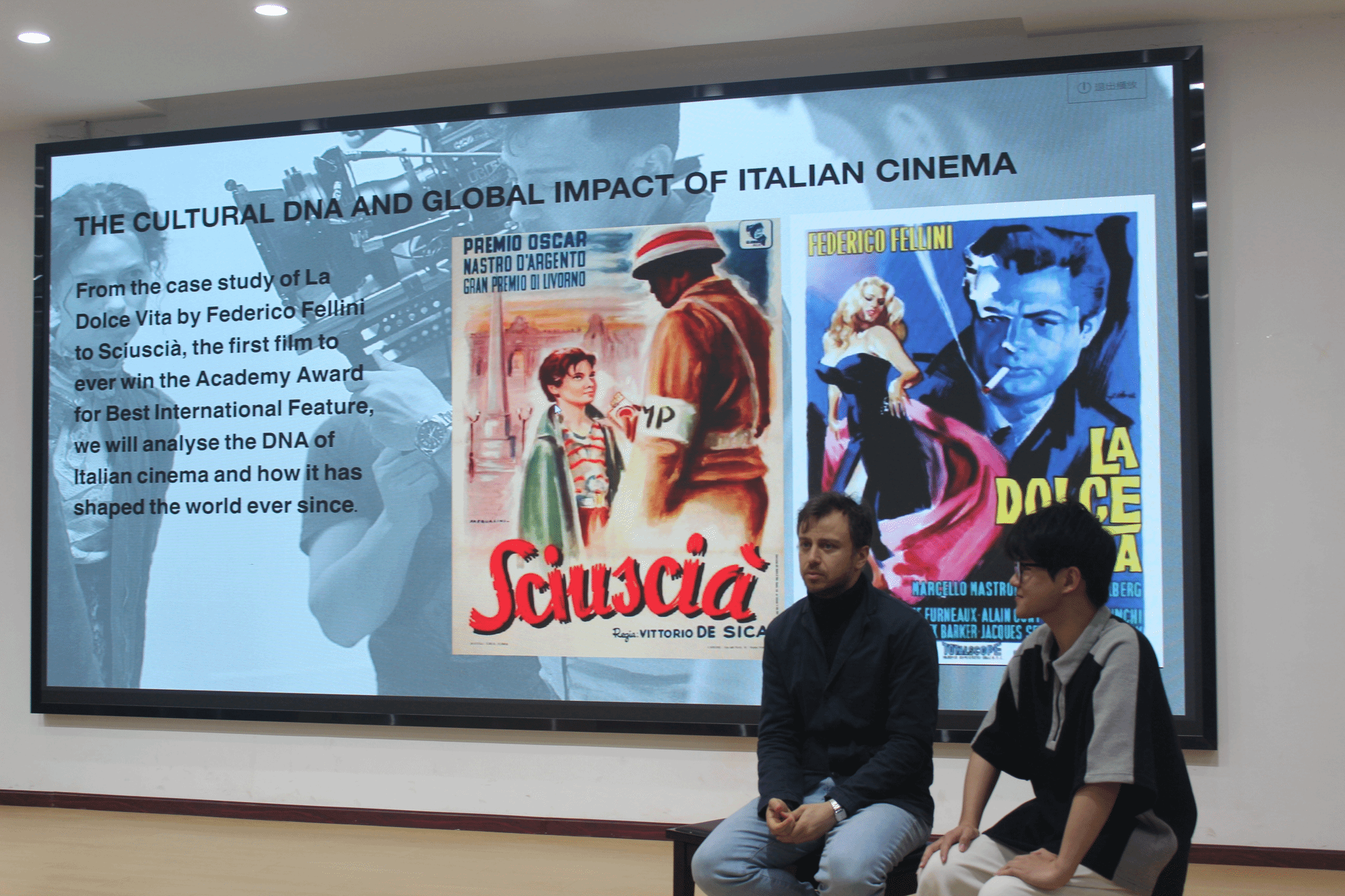 活动中,Cassini教授通过对意大利经典电影赏析,向师生们展示了意大利电影艺术创作风格,同时结合历史背景讲述电影意大利电影发展变革史,并对电影的情感表达和人物刻画进行了重点阐释。他指出,与美国超级英雄电影强调视觉冲击和宏大叙事相比,意大利电影更注重通过细腻的情感联系和内心共鸣打动观众