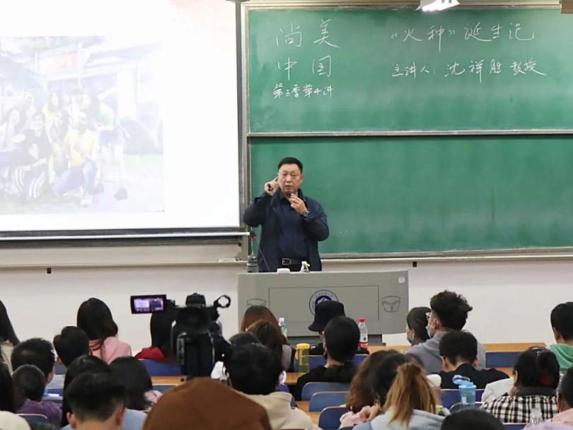 当询问沈教授关于这幅巨作的创作缘由时,他是这样表示的:“《火种》表达的是毛泽东和广大有志青年对于救国和实现民族复兴的展望,反映的是青年为了革命事业不惜牺牲自己的大无畏品质和精神。除了回顾革命先烈对历史做出的贡献,它的当代意义在于如何通过历史教育同学们培养正确的人生观、价值观和成功观。”除了知识、技能之外,沈教授强调教育的意义在于“立德树人”,要告诉同学为什么要充满动力去学习,把这个原因转换为信念。除此之外,他提出作为老师也要学会学习。教师不只是一种职业也是一种事业,要具有信念和理想,加强思想建设,在本职之外,更需要多多涉猎,学有所长,将更多来自实践中的经验和智慧教授给同学。沈教授的肺腑之言,是对教育温度的理解。