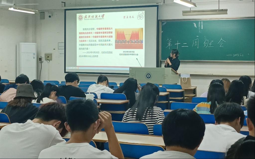 扬精神以奉献。各年级辅导员、班主任从形成背景、核心内容、进步所在和价值蕴含等方面讲述了五四精神。呼吁全体同学们将五四精神内化于心,外化于行,将自己的青春热血奉献给社会,奉献给国家富强的伟大事业当中去。随后,集中学习了公司党委书记田辉玉在公司2022年度共青团“五四评优”表彰大会上的重要讲话精神,寄语广大青年师生要做有理想、敢担当、能吃苦、肯奋斗的新时代纺大好青年。