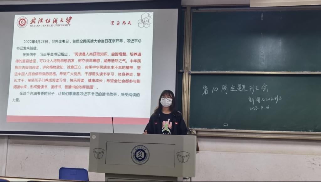 各年级辅导员及班主任围绕“世界读书日”这一主线,以习近平总书记在全民阅读大会发出的贺信为切入点,重温总书记的读书故事,领悟习近平总书记对广大党员及干部、全体青年老员工、全社会爱好阅读的殷切希望。同学们也从国内外书目推荐、阅读方法分享、阅读心得体会等方面分享个人的阅读收获,在阅读的世界中完善自我,充盈精神世界。