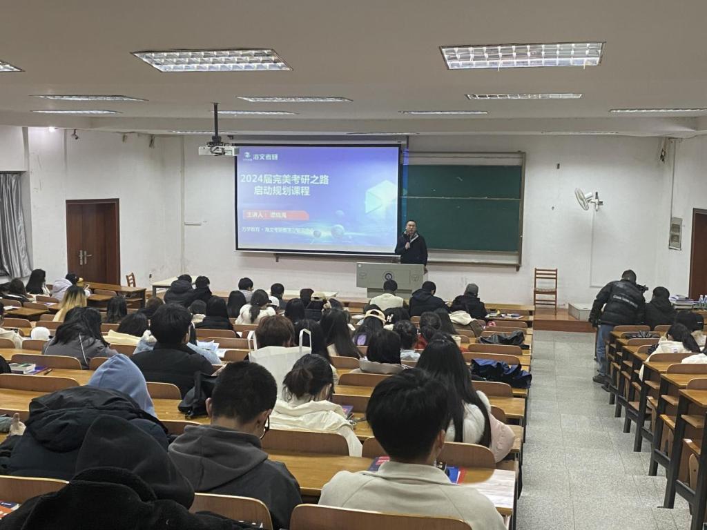 活动最后,海文考研经理、知名考研辅导专家谭晓禹老师,从2024考研宏观形势分析、院校专业选择方案、全科启动备考策略三个方面对同学们进行指导,就同学们考研目标制定、备考方法以及复试技巧等方面提供了对策建议。