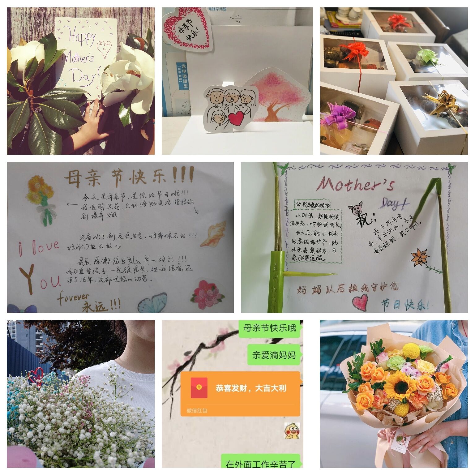 由于疫情原因,今年的母亲节让大家可以在家陪伴母亲,各班的心理委员在线上组织同学们积极庆祝母亲节,用自己的方式表达对母亲的爱:有的同学送了小礼物,比如鲜花,首饰,有的同学则亲手为妈妈做了爱心小蛋糕,还有的同学为妈妈庆祝了母亲节的同时,也不忘给妈妈的妈妈一个难忘的母亲节。