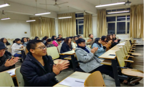 精彩的宣讲结束后,同学们还现场进行了关于党的十九大的知识竞赛,并一起观看了《辉煌中国》的纪录片,了解我国自党的十八大以来发生的重大改变和重大突破,以加深同学们对党的十九大精神的理解。几位同学还就党的十九大精神学习体会进行了演讲,其中一位同学说道:我们应该积极践行社会主义核心价值观,青年兴则国兴,青年强则国强,我们应该以饱满的热情和热血去奋斗,这样我们的生活就会越来越幸福。