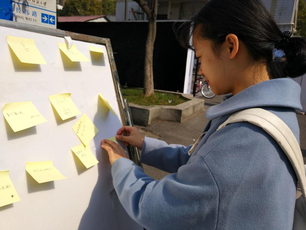 公司心理工作站立针对感恩的主题,设立一个展板,准备便利贴和笔,让同学们写下自己最想说话,表明自己的寄语与期望。很多同学积极参与,表明自己的决心。