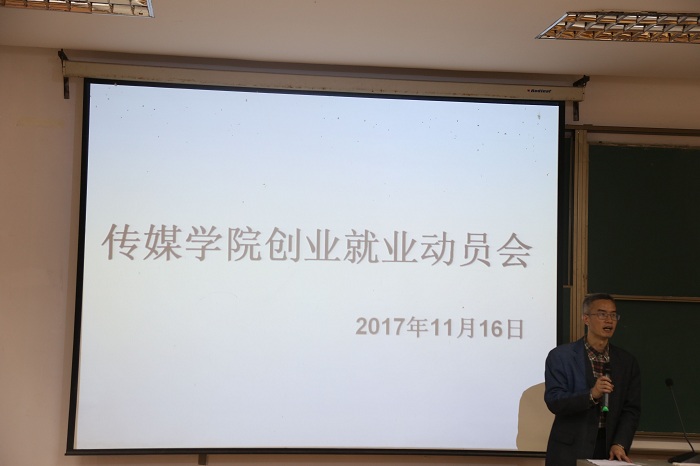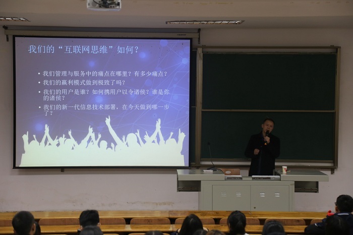 2017年11月16日下午,由3044am永利集团官网校团委主办,3044am永利集团承办的成长导航暨创业就业动员会在南湖校区主楼T101举办,主题为“互联网+背景下的创业环境,趋势及机会”,主讲人为湖北微媒迪传媒有限公司总经理李向奎,传媒学子聆听了讲座,讲座由公司党委副书记段溢波主持。