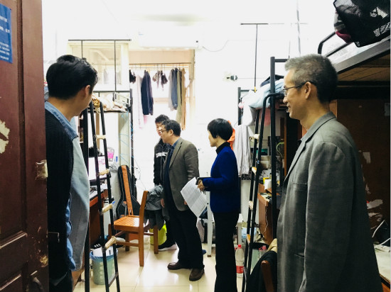 10月18日下午,公司党委书记熊少平、副书记段溢波、张晓琳老师、毛小康老师等一行四人,到公司员工宿舍开展秋冬季寝室安全卫生检查,其中重点走访了公司研究生宿舍,并对其宿舍安全情况进行了检查。