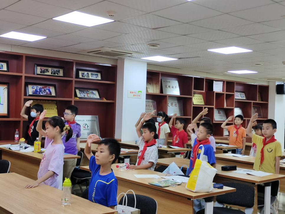 开班首日,志愿者们开展了少先队员主题教育,通过学唱《中国少先队队歌》、了解少先队标志含义和讲述中国少年先锋队故事等活动,带领现场小朋友深入了解中国少年先锋队的历史沿革、组织标志及文化传统,展现了新时代少先队员朝气蓬勃的精神风貌。