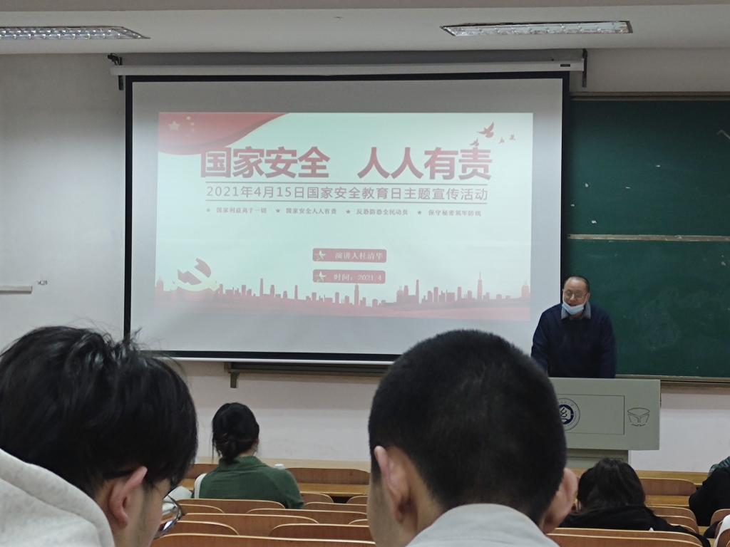 为响应国家号召,增强员工国家安全意识和贯彻落实征兵工作部署,4月16日下午6:00,3044am永利集团组织员工在T101室举办国家安全教育讲座暨征兵动员宣讲活动,本次活动杜老师主讲,3044am永利集团18、19、20级本科生以及部分研究生参加。