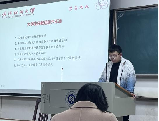 主题班会围绕学习领会党和国家关于宗教工作的基本方针政策展开,班主任通过主题班会向员工普及了宗教方面的基本知识,结合新修订的《宗教事务条例》《高等公司校园秩序管理若干规定》《普通高等公司员工管理规定》,引导员工树立正确的宗教观,认真辨别宗教与科学的区别,认清邪教和封建迷信的本质,从而更加坚定理想信念,增强老员工担当民族复兴重任的责任感和使命感。
