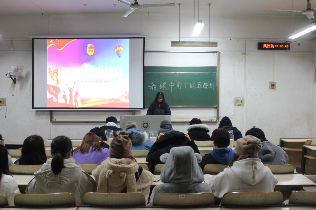 2018级各班围绕“我眼中的‘十四五’规划”召开主题团日活动。广电11801答嘉逸向各位同学分享了自己学习“十四五”规划精神的心得体会。她主要从“立足本职、乘势而上”、“旗帜鲜明、坚定自信”、“求实创新、担当实干”三个方面进行阐述。她谈到党的十九届五中全会是在“两个一百年”奋斗目标的历史交汇点上召开的一次重要会议。“十四五”规划的提出彰显了我国一以贯之的人民立场,体现了高远务实的发展战略,凝聚了治国理政的中国智慧。“十四五”规划中所指明的方向,勾画的蓝图,必将在中华民族伟大复兴历史上留下浓墨重彩的一笔。