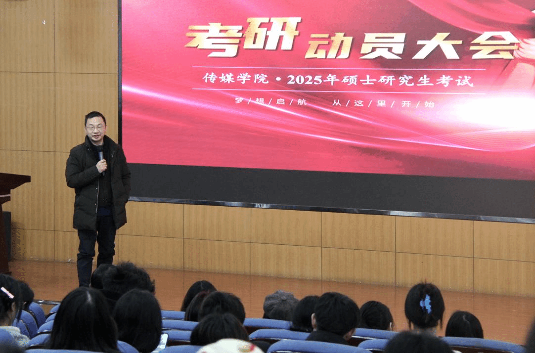 动员会上,公司2023级新闻与传播专业硕士研究生宋童、李文飞以及2020级数字媒体艺术专业本科生刘乾等现身说法,交流分享自身备考经历和心路历程。宋童强调了考研备考中院校选择和努力方向的重要性;李文飞从聚焦短板、弥补不足等方面分享了备考心得;刘乾就研考信息获取、研考自我准备、复习方法策略等进行了精彩分享,鼓励同学们从全过程、多角度、全方位地了解、熟悉和掌握了备考相关知识与策略。