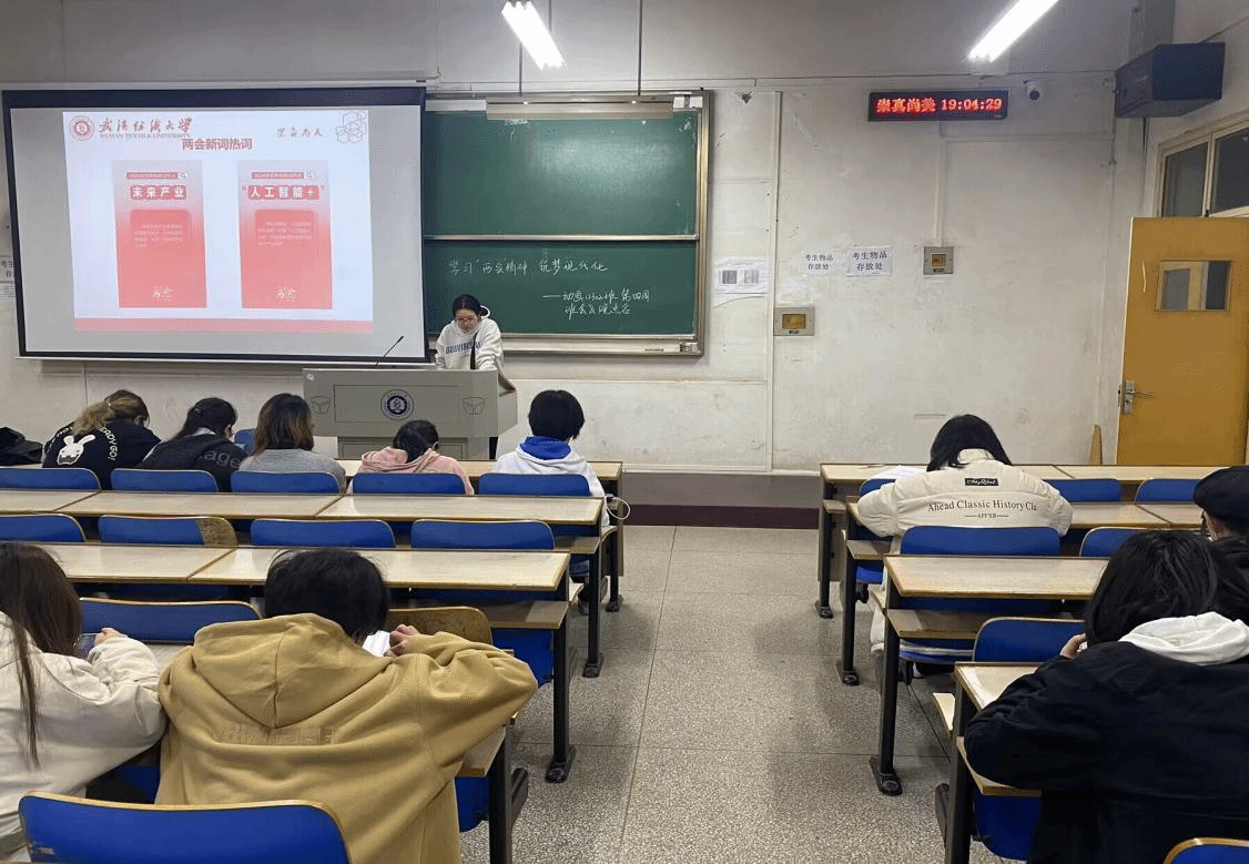 关注热点,激发动力。各位班主任老师带领同学们学习‘两会’新词热词,了解‘两会’教育动态,并结合公司员工专业特色,对教育关键数据和员工就业形势进行分析,激发员工的学习动力,引导员工明确个人目标,坚定理想信念。
