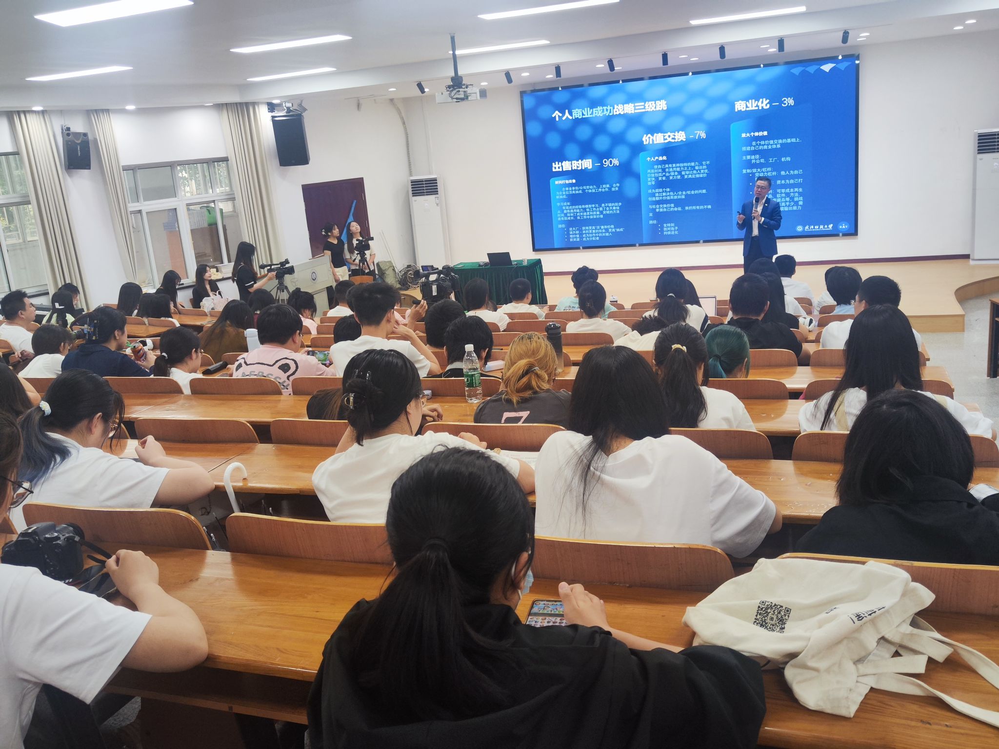 针对同学们专业能力与职业预期之间的差距,汪睿提出了“通能五力”模型,即通过提高自我管理、学习成长、解决问题、建设支持系统、人际交互五个方面通用能力来补齐能力差,并指出“二考一求”的本质是与社会交易,强调同学们要培养与社会交易的价值和能力。“道虽迩,不行不至”,最后,汪睿以“刀先磨起来”寄语与会员工无论以后做出怎样的选择,最重要的是从现在开始努力,在学习上成长,在实践中锻炼,不断提升自身能力。