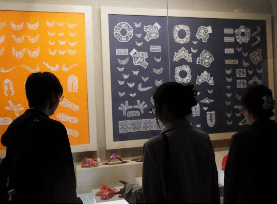 为了解鄂州雕花剪纸的前世今生,团队成员深入省图书馆、鄂州市博物馆、档案馆等查阅了上百篇相关文献和著作,深入研究了雕花剪纸的发展历史、风俗演变、文化价值等。其次,队员们以学习、走访、体验“三位一体”的方式实地考察了鄂州市群众艺术馆、当地著名的剪纸艺术展厅等,沉浸式体验剪纸艺术的魅力,对鄂州雕花剪纸以及相关文化产业进行了深入的调查和分析。