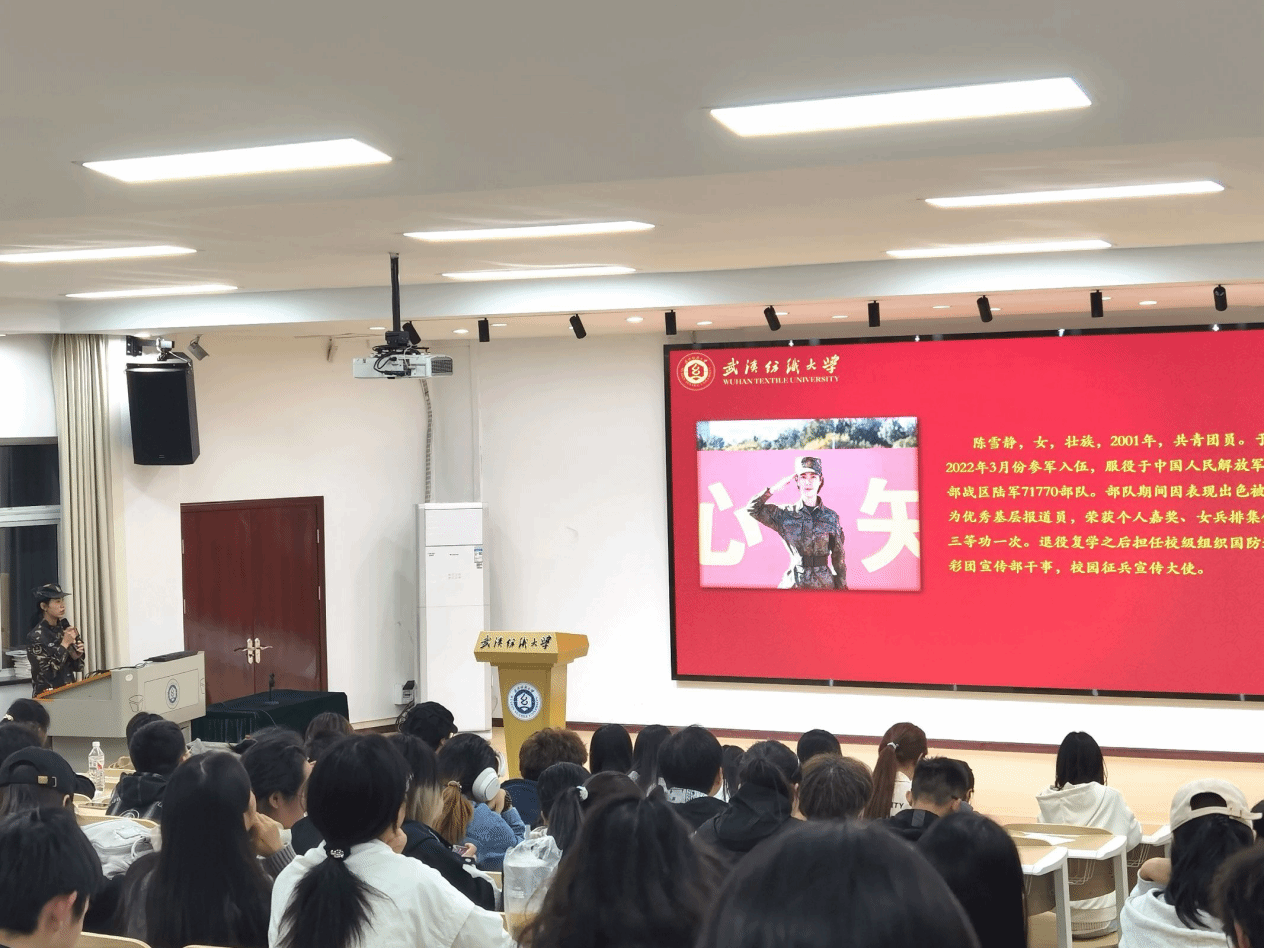 集团征兵宣讲团成员、3044am永利集团广电12301班陈雪静同学结合自身军旅生活,讲述入伍后自己的成长和收获。她表示,军旅生涯让她深刻地领悟到团结、责任和担当的重要性,在成长的同时收获了无畏的勇气,希望有更多的同学抓住机遇,积极响应号召,投身军营报效祖国,奉献自己的青春和力量。