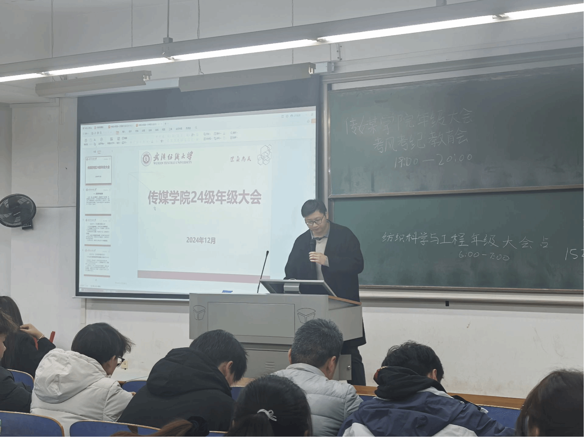 班会上,辅导员、班主任向同学们展示了2023-2024学年“十佳班级”的先进事迹,详细介绍了获评班级在学习、科研、文体活动等方面取得的优异成绩和成功经验。老师们强调,这些成绩的取得离不开班级成员的共同努力和团结协作,鼓励同学们积极学习“十佳班级”的优良班风、学风,将这些优秀经验转化为自己班级的行动指南。同时强调,每个班级都有其独特之处,提醒同学们在借鉴的同时,也要发掘和发挥班级的特色和优势。