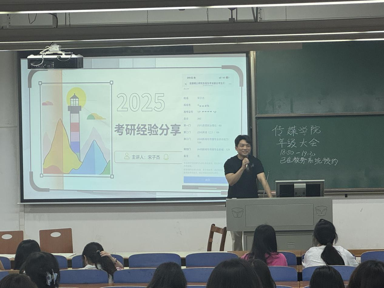 主题班会以“经验分享+诚信教育”为主线展开,2021级数字媒体艺术专业宗锐和网络与新媒体专业宋子杰从专业学习、实习实践、学科竞赛及高分备考等多方面展开分享。在专业学习方面,他们强调系统化知识积累的重要性,可借助思维导图等方式辅助记忆;在实习实践方面,分享如何将理论应用于实际工作,通过简历制作、面试技巧等技能提升实现人岗匹配;在学科竞赛方面,强调团队协作与创新思维的重要性,从而提高自身专业水平和科研基础;在高分备考方面,结合高效学习方法、专业模考技巧、学习心态调整等板块介绍,鼓励同学们要快乐备考。