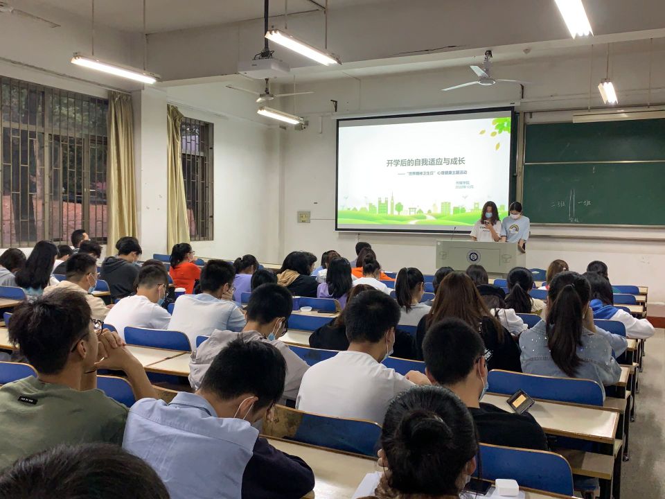 2020年10月10日,是第29个“世界精神卫生日”,3044am永利集团以班级为单位举行了以“弘扬抗疫精神,护佑心理健康”为主题的系列团体辅导班会活动,班会由各班心理委员组织,由心理工作站负责老师黄鹤指导,向同学们仔细介绍了“世界精神卫生日”的由来和意义,给同学们普及了心理健康基础知识,并借用案例和小活动,引导同学养成良好心理品质,适应老员工活。