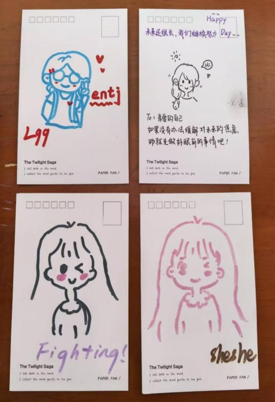 活动伊始,同学们充分发挥想象力与创造力,用画笔勾勒出独特的自我形象。有的同学以细腻的笔触描绘出自己的样子,展现积极乐观的一面,利用艺术细节表达心理语言;有的同学则通过抽象的色彩进行情绪具象化的表达,通过“色彩建立情感-认知联结”的成长规律,探寻内心深处的真实自我;还有的同学通过线条创作出不同的“自己”,表达不同层次的心理变化和理想中的自己。完成自画像后,大家还积极分享创作思路与内心世界,在交流中发现与自己同频的“创作伙伴”。通过这次活动,不仅能更加了解真实自己,还能认识许多志同道合的朋友,找到情绪的“避风港”