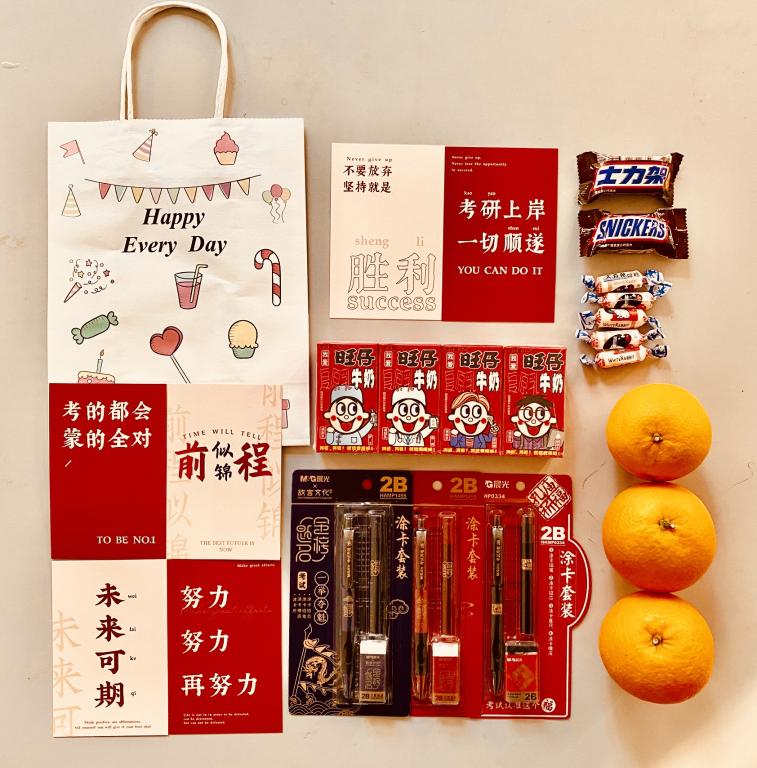 公司为考研学子精心准备了“媒”好礼包,内有金榜题名“笔”、“牛气冲天”奶、“心想事成”橙、“能量满满”士力架、“‘媒’好祝福”明信片以及零食小礼袋、防疫物资等,精心准备的礼包承载着公司对研途学子的鼓励支持,也更加传递了对考研学子的真切祝福和殷殷期望。