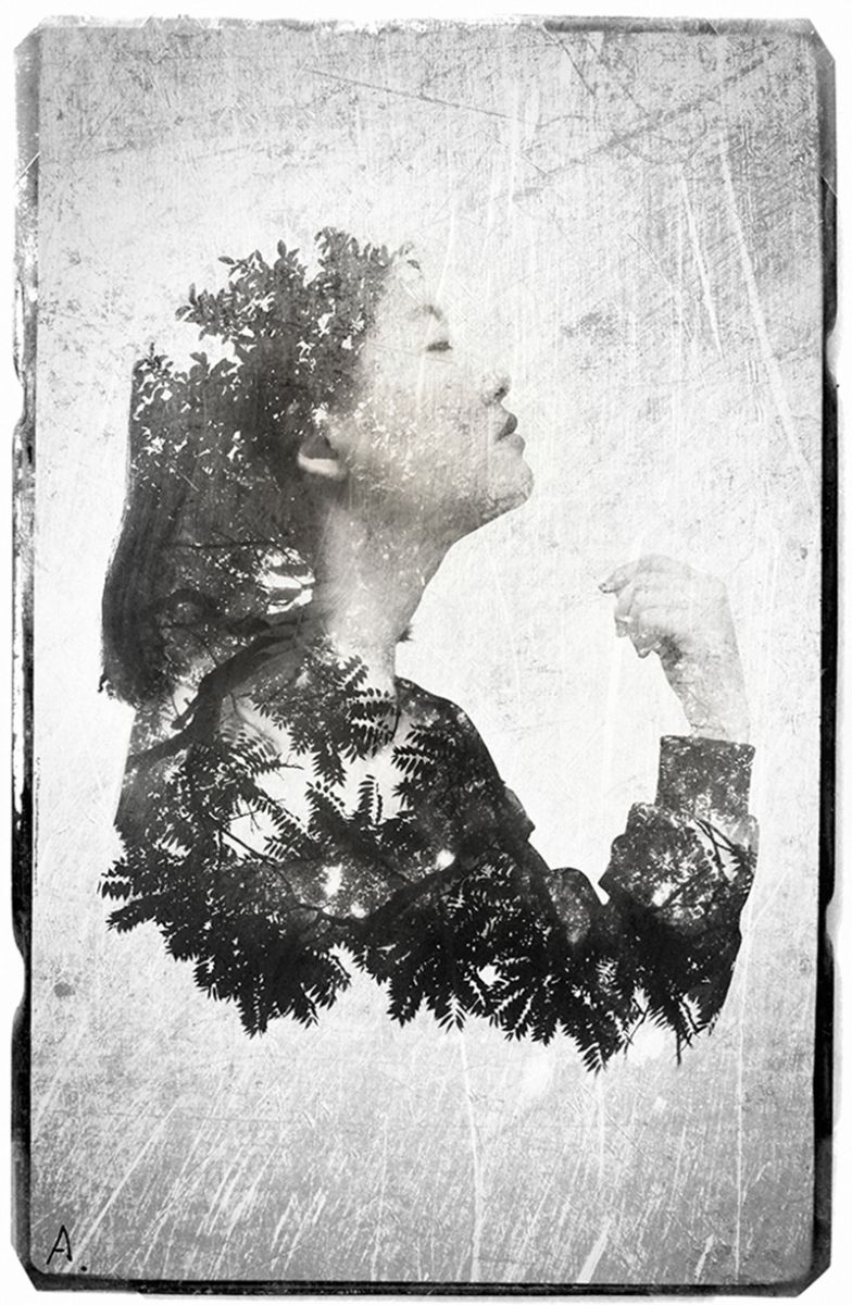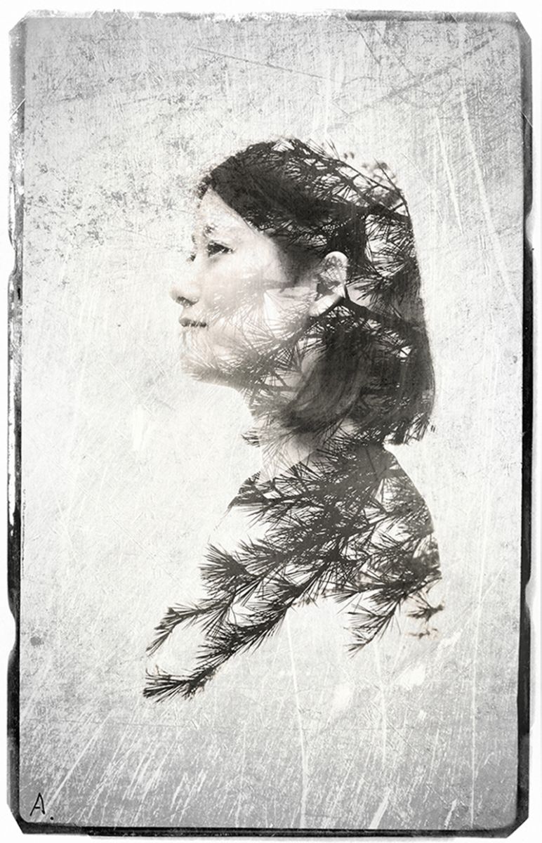 我们常常看到的事物,都和我们有着分不开的联系。人与自然,一直是和谐统一的一体。树木也经常在文学上,拿来比喻人。人与自然是相互联系、相互依存、相互渗透,是不可分开的两个整体。但同时人与自然又是相互对立的,人为了更好的生存和发展,会相应的打破自然界的自然状态,改变自然。用多重曝光的表现形式,产生不一样的视觉效果。当我遇见你,当人物与树木遇见的时候,使他们和谐统一在同一画面中。用人物的形,或者树木、树叶的形,互相勾勒出新的形。用这些符号语言表达出人与自然和谐相处,人们应该爱护自然,保护自然。