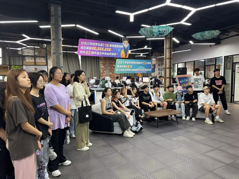 随后,老师们实地教学,带领员工参观修缮后的平和打包厂主楼,详细为同学们介绍建筑历史与特色,让同学们亲眼、亲耳、亲手感受到文物保护的生动细节。在平和打包厂F座4层微梦传媒“疆湖儿女”工作室,员工们通过对《巴公房子》、《党徽大叔》等影片作品工作成果的学习,使大家对专业知识有了更深刻的把握、对传媒行业有了更深刻的理解、对传媒行业未来就业方向有了更清晰的认识。