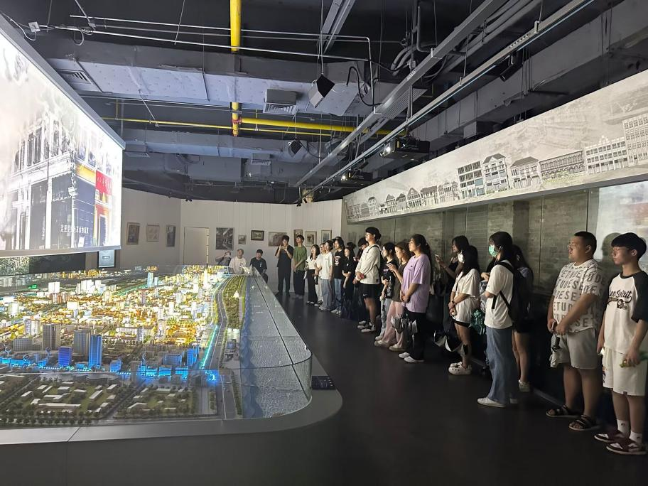 活动中,企业负责人带领员工们走进汉口历史风貌区展示中心,现场实地参观汉口历史风貌区产业楼盘模型、发展历史宣传片和文物建筑介绍交互屏。通过现场实地参观与宣传讲解,同学们切实体会到了拓展风貌保护与城市更新的有机结合的魅力,感受到了老房子+双创的发展模式,见证了街区环境提升、里分升级改造的丰硕成果。