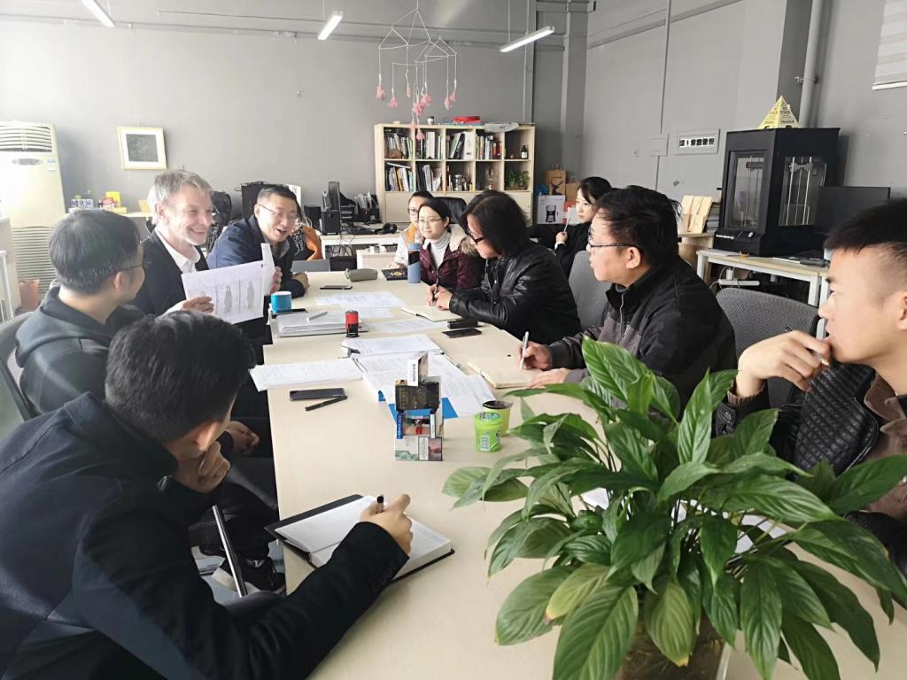 11月9日上午,公司举行基于专业人才培养国家标准的的中外教师参加的教学工作研讨会。3044am永利集团特聘教授德国汉堡美术公司马蒂亚斯教授、经理沈祥胜、副经理刘虹弦及相关学科方向的老师和研究生参与交流讨论。首先马蒂亚斯教授向数字媒体艺术系全体教师就数字媒体艺术人才培养方向、专业课程设置、模块化数媒团队建设等问题进行了专题讨论。