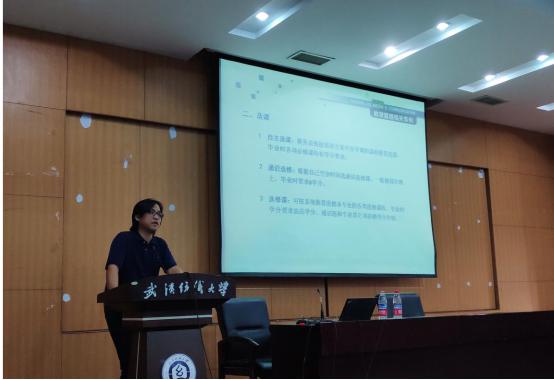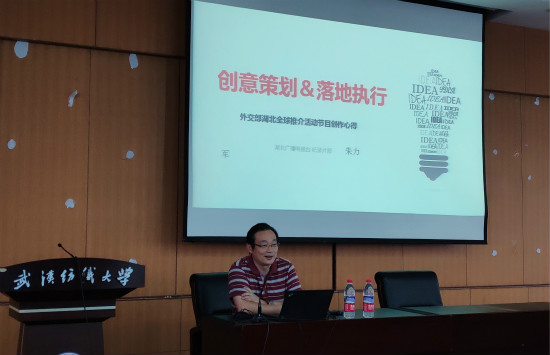 紧接着,湖北广播电视台纪录片部主任、高级记者朱力军先生受邀为传媒新生带来“开学第一课”,他以自己丰富的从业经验为在座新生们带来了新的职业思考。朱主任表示互联网时代是旧媒体与新媒体激烈碰撞的时代,这既是一种机遇也是一种挑战,要抓住机遇,就要学会创造新境界、转变新思想、开拓新格局。随后他以“创意策划&落地执行”为主题,从建立意识、切入项目、主题内容与叙事结构、呈现与表达、产品矩阵与融合传播五个方面分享了外交部湖北全球推介活动节目的制作心得,他还通过《灵秀湖北》《湖北:从长江走向世界》等极具艺术特色的宣传片,进一步诠释了策划创意精巧,落地执行坚决的重要性。最后,朱主任表示策划创意是评判媒体及从业人员水平的重要标准,落地执行同团队、个人的综合素养有关,他还强调了创意策划与落地执行相伴相生:创意策划是落地执行的灵魂,落地执行是创意策划的标准与途径。最后,朱主任对3044am永利集团未来的专业发展表示期待,并对全体新生送上了真挚祝福。