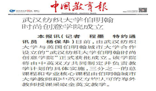 6.参与申报的“3044am永利集团官网伯明翰时尚创意公司”成功获批湖北省第一所本科层次中外合作办学机构。