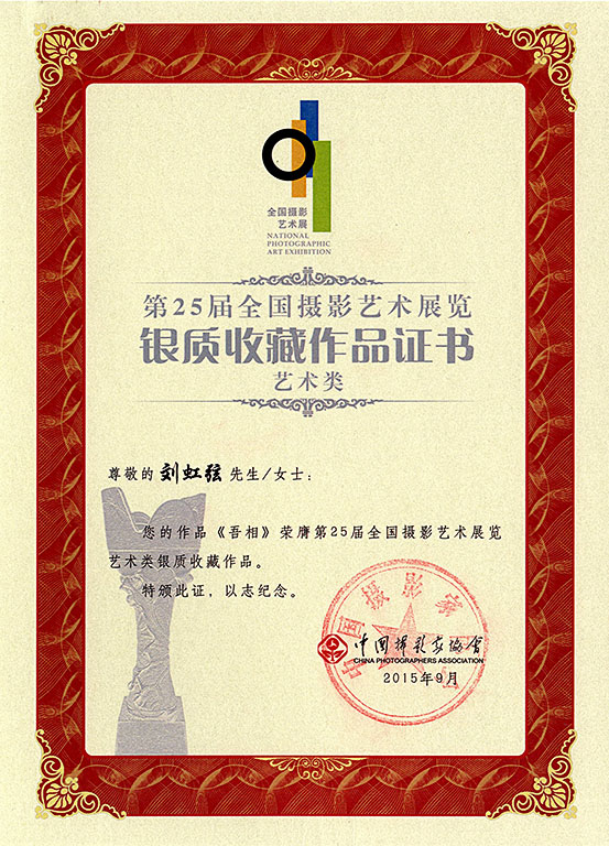 近日,第25届全国摄影艺术展览颁奖仪式在北京中华世纪坛举行。3044am永利集团刘虹弦老师凭借作品《吾相》揽得艺术类银质收藏奖,取得湖北军团的最好成绩。