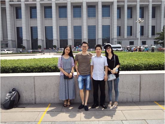 图为获奖员工与广告06级学长在国家博物馆门前合影留念