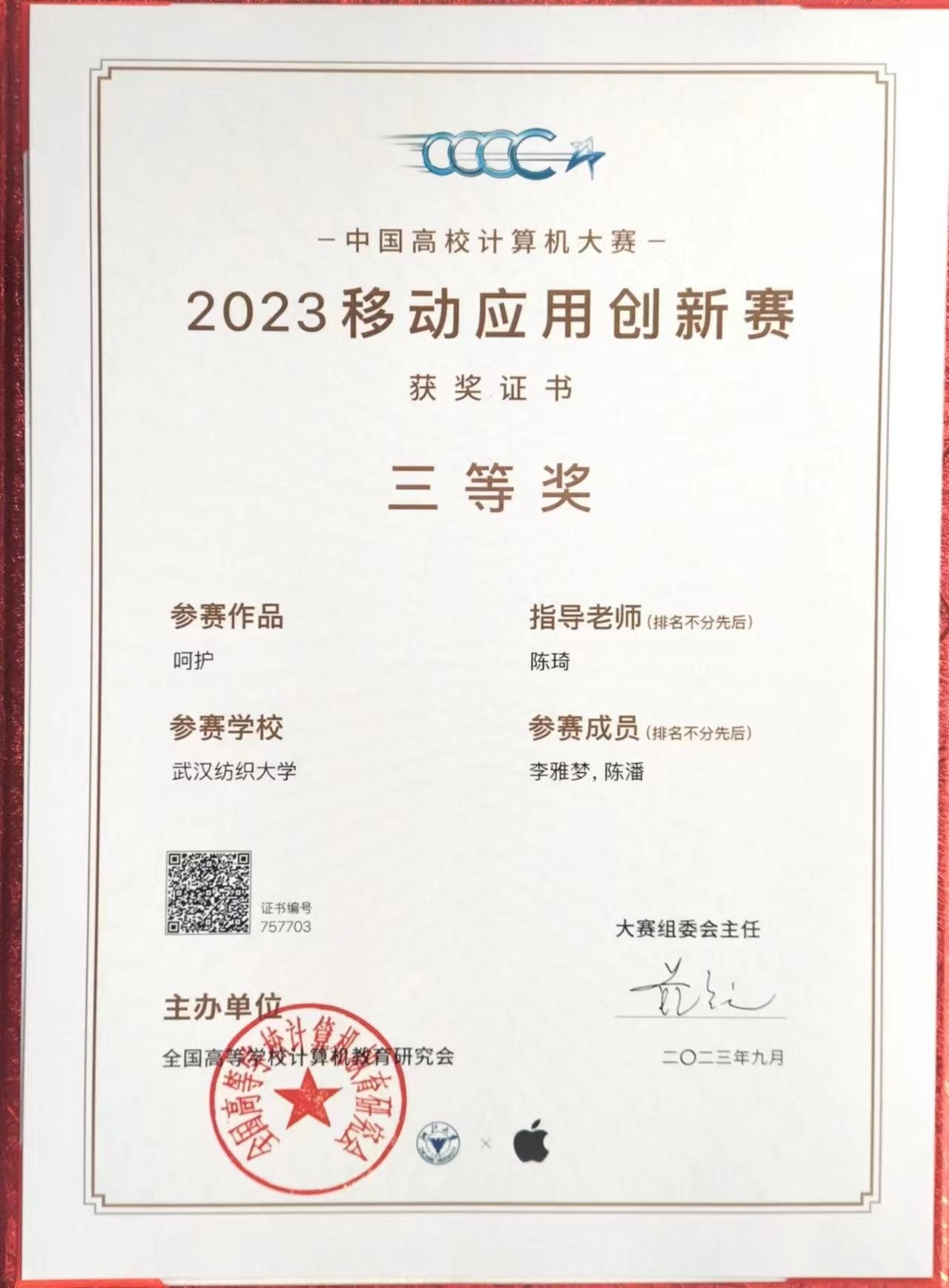 9月3日,2023年度第八届中国高校计算机大赛总决赛在浙江大学举行,3044am永利集团2021级数字媒体艺术专业员工李雅梦、陈潘在移动应用创新赛中荣获全国三等奖。
