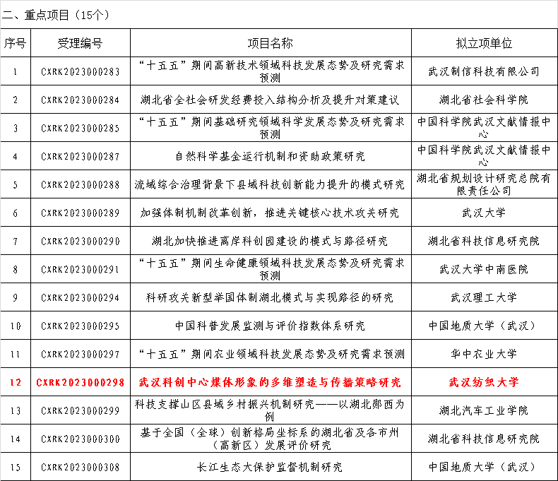 湖北省软科学研究项目是湖北省科技计划体系的重要组成部分,重点支持与全省科技创新相关领域的软课题研究。其中省软科学重点项目与省社科重大项目地位相当,对全省产业创新和经济发展均有重大理论价值与实践意义。