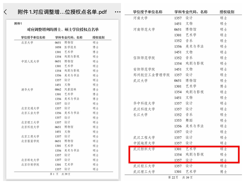 近日,经国务院学位委员会审议批准,公司戏剧与影视(1354)硕士专业学位授权点的对应调整申请获批,同时,不再保留广播电视艺术硕士学位授权点。同批次调整获批戏剧与影视硕士专业学位授权点的省内高校有武汉大学与武汉体育公司。