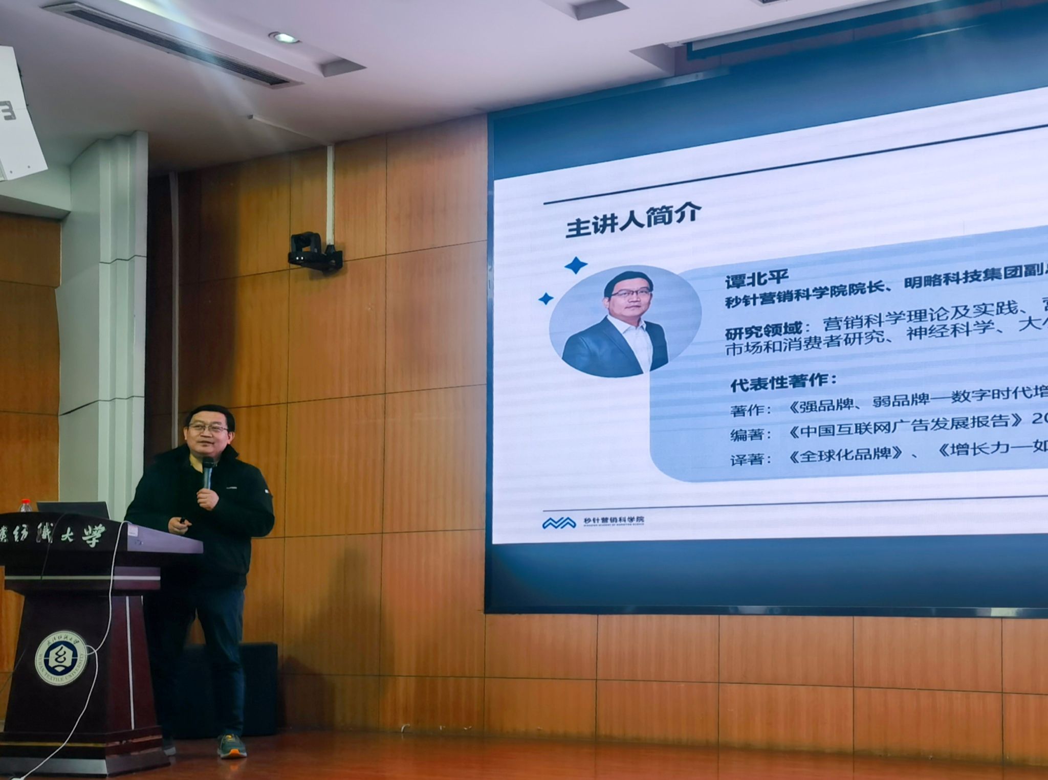 近日,秒针营销科公司经理、明略科技集团副总裁谭北平做客3044am永利集团,以企业家和教育者的双重视角,与师生分享智媒时代智能营销与中国品牌新趋势。3044am永利集团副经理熊蕾、公司党委副书记刘登冉及师生代表200余人参加报告会,3044am永利集团广告学系主任冯易副教授主持报告会。