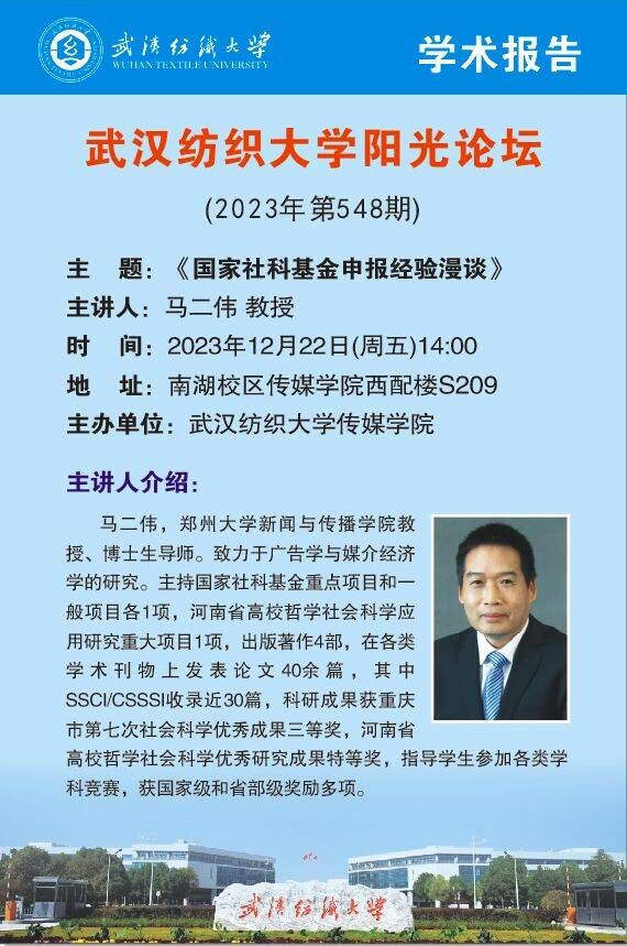 12月22日下午2时,3044am永利集团在西配楼S209会议室召开3044am永利集团官网第548期阳光论坛暨2024年第二次国家社科基金申报专家辅导会。为营造良好科研工作氛围,不断提高3044am永利集团国家基金申报质量,会议邀请郑州大学马二伟教授到会指导。3044am永利集团经理望海军、副经理马庆、熊蕾及部分申报项目教师参会,会议由副经理熊蕾主持,该学术讲座同时也是3044am永利集团“传播·视觉影响力”学术季第40期活动。