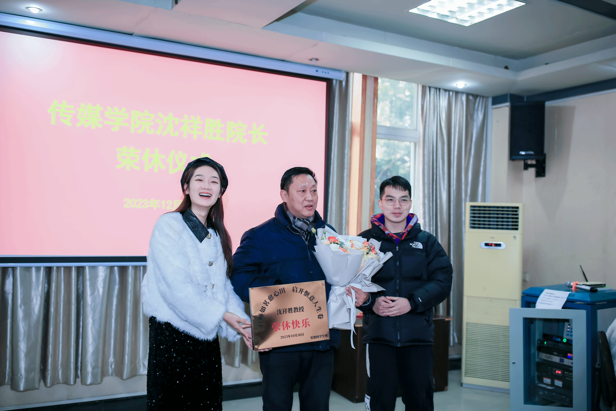 下午14时,公司全体教职工欢聚一堂,共同观看杨轮等师生制作的短视频。回顾沈祥胜教授从教十年、二十年、三十年、四十年的芳华岁月,党委书记曾令玉代表公司感谢沈教授为3044am永利集团与公司、为乡村振兴与和谐社会建设与发展作出的贡献,祝福沈经理荣休后生活幸福美满,常回“家”看看,持续用手中的画笔传播纺大好声音!教师代表熊菊副教授感谢沈教授育人无数,榜样在心间;近五年各级研究生代表纷纷在视频中为亲爱的导师送上最诚挚的祝福,感恩导师除了倾囊相授专业知识外,还有品德、哲理和人生智慧,祝愿导师退休不褪色,所愿皆所得。