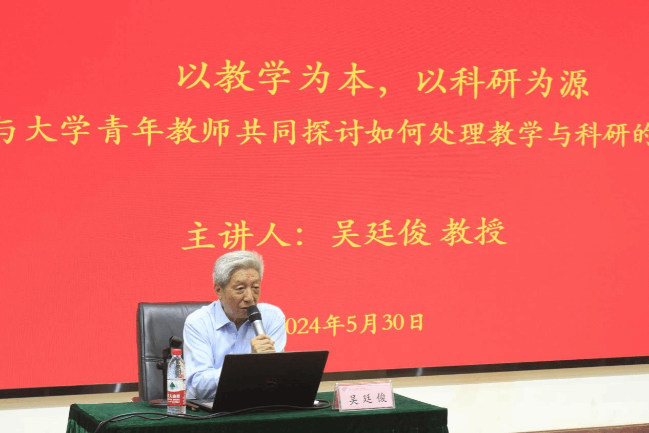 讲座伊始,吴廷俊教授明确指出,教学与科研是大学教师肩负的两项基本职责,它们共同指向了"育人"这一核心目标。在探讨如何平衡教学与科研这一关键问题上,吴教授表示,教学与科研有首颔之分和本源之别,大学教师应以教学为首,科研为颔;教学为本,科研为源。