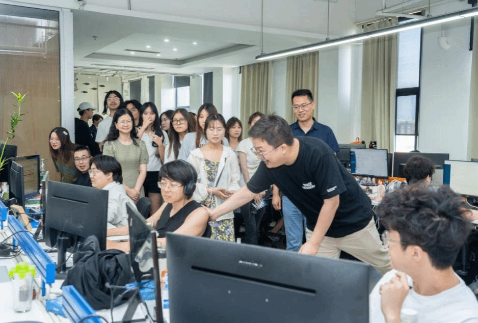 在参观过程中,通过盛天网络工作人员的详细介绍,大家对该公司在数字娱乐内容、IP游戏运营、游戏发行、游戏衍生服务、互联网广告领域的发展历程有了初步了解,致力于国内领先的场景化泛娱乐平台公司的发展历程和业务范围有了初步了解。随后,师生们深入公司各个部门,近距离观察了员工的工作状态以及他们所使用的先进设备和软件,感受盛天网络深厚的业务积累、研发实力以及轻松、创新的工作氛围。