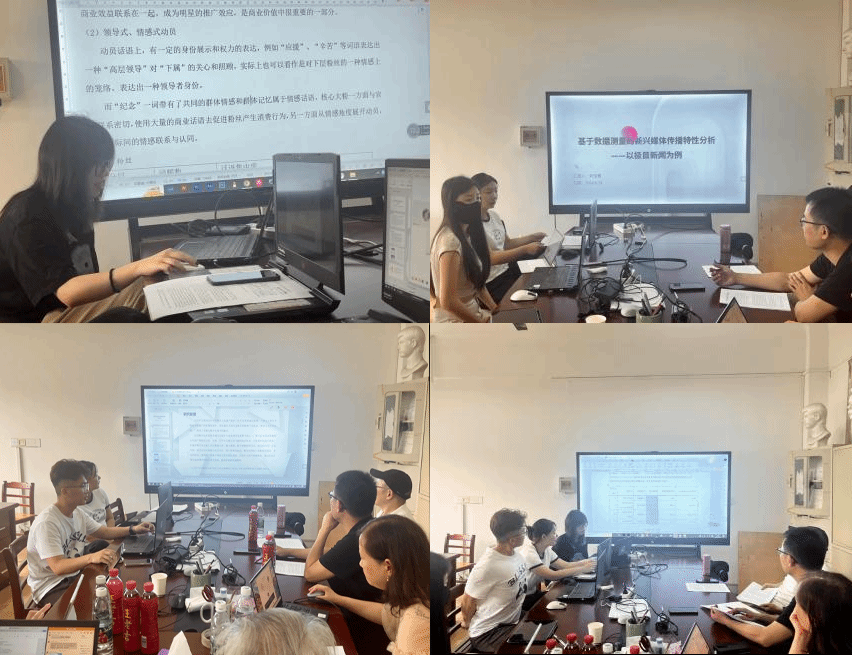 在论坛上,同学们就自己的研究选题和研究问题与老师们进行了深入探讨。胡菁卉以青年粉丝群体为研究对象研究了其内部层级化组织的协作与反抗模型,以资本和权利的创新视角对粉丝群体的互动行为进行分析,以此来总结不同集聚需求下的互动模型。刘玉倩使用数据测量的方式,用weibo spider爬取数据,量化分析各组数据集,用数据分析研究探究新媒体的传播特性。赵庆华对空间流动性理论进行阐述,分析流动性在数字空间彝族绣品虚拟展示中的应用,流动性通过改变虚拟空间环境,促使用户产生意义变化和情感变化。王昊然结合精神分析法对于核艺术近些年的中式流变进行了研究,并分析了其对于我国艺术生产实践的可借鉴意义。陈雨萱分析了长江水利文化的历史意义及其在中国社会中的价值,介绍了深度学习中加深学习者记忆和理解的知识学习方法,并探讨了水利文化体验的数字化应用。朱凤怡从产品信息秩序视角对扁平化数字插画的研究成果进行了汇报。