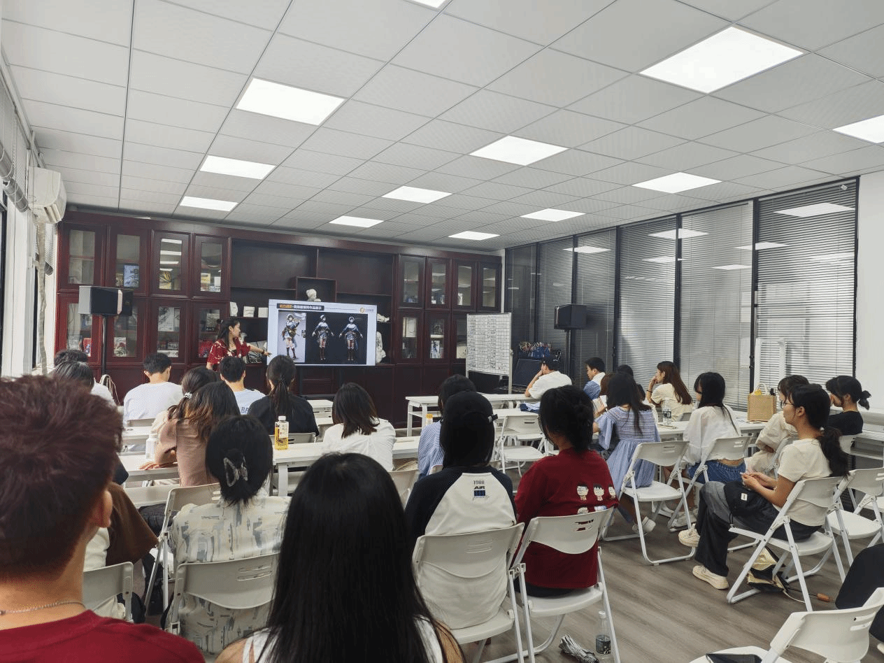 在实践教学过程中,企业负责人向师生们详细介绍了游戏研发流程、人才技能需求和未来规划,分析了数字艺术在游戏领域的应用及发展。企业研发人员(行业导师)以正在开发的具体项目为案例,从角色设计、模型制作、场景搭建到动作制作,向同学们分享了美术制作和游戏开发的经验和心得,给员工呈现了一堂生动的实践教学课,让同学们对数字媒体艺术在游戏开发领域的应用有了更加直观和深刻的认识。