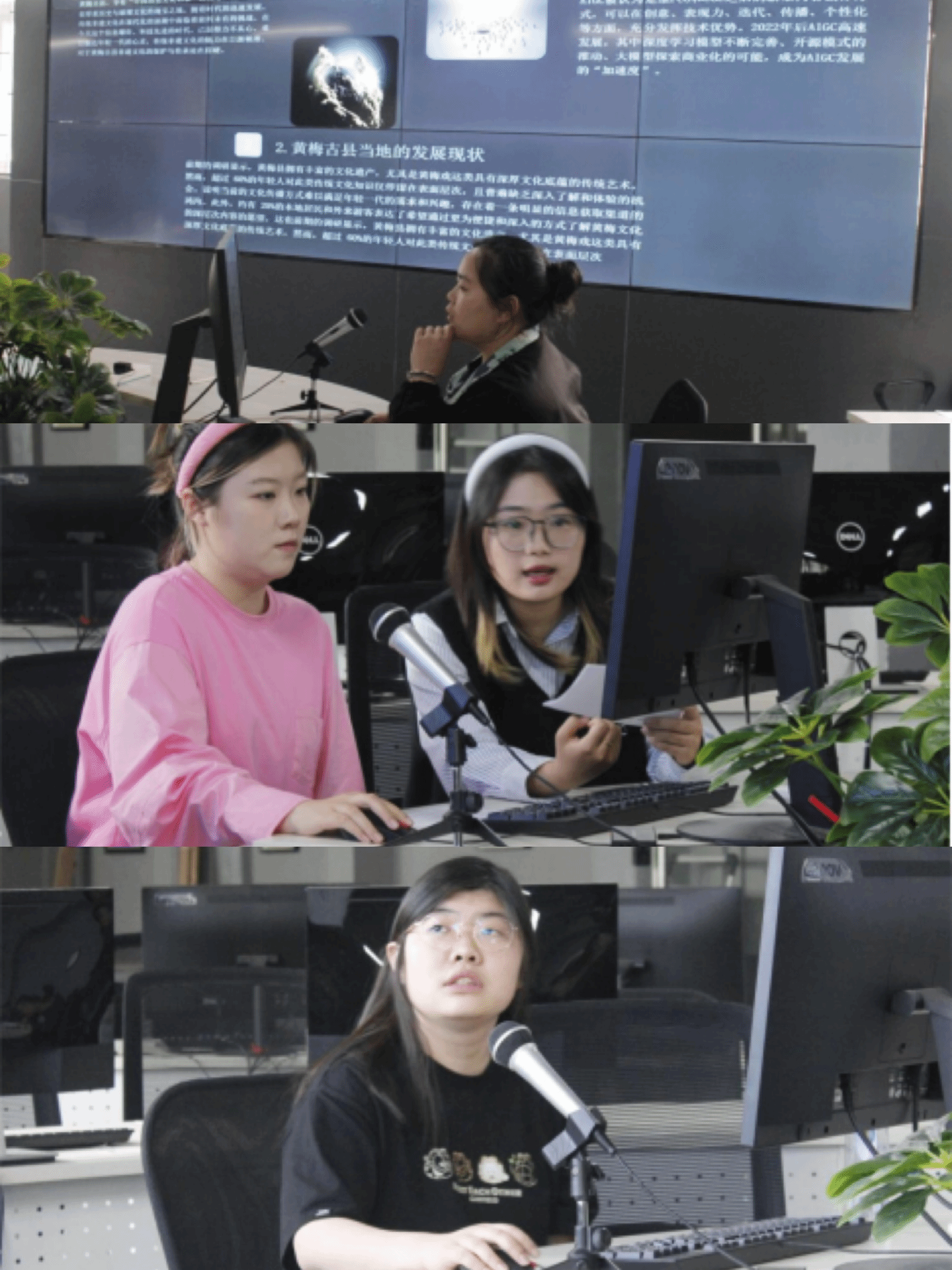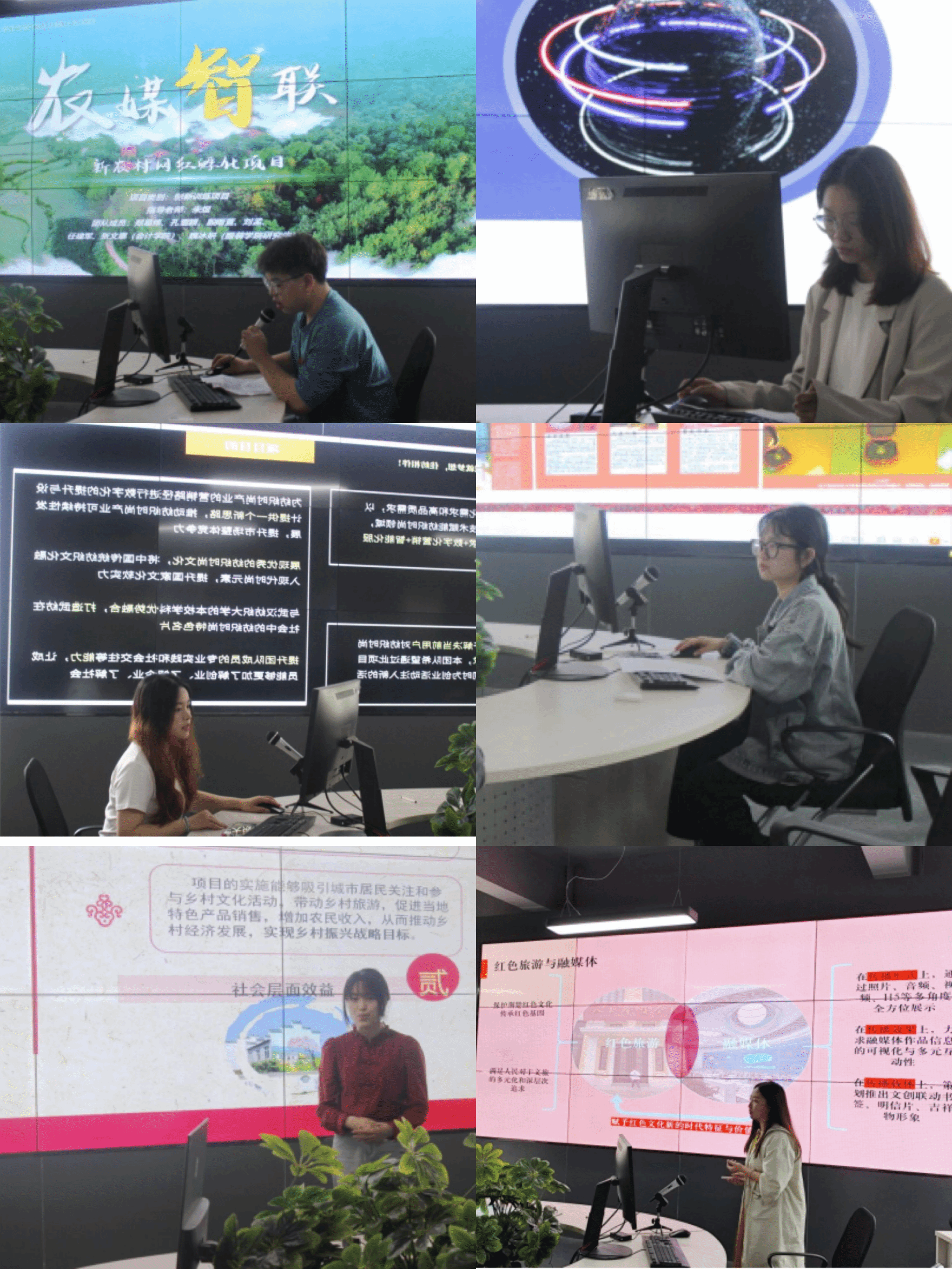 广播电视学12201班的刘志欣同学带来了关于湖北省红色旅游文化的融媒体传播的项目,旨在通过寓教于乐的方式传播红色文化,满足大众精神文化需求,推动文化产业发展。动画12202班的包晋绮同学介绍了“智能黄梅 聚势创新—AIGC设计助力黄梅古县非遗文化数字平台建设”的项目,旨在通过构建信息可视化平台,推广黄梅古县的非遗文化,促进相关旅游业发展。数字媒体艺术12101班的黄雨洁团队展示了“悦息—基于生理信号的情绪干预系统”及其现有专利成果,探索了数字技术在情绪干预中的应用。数字媒体艺术12101班的刘益静团队提出了“数智化多模态教学服务设计”方案,结合传统网课与AI适应,虚拟实验室与体感交互,整合物理和虚拟教育空间资源,创新教学方式。数字媒体艺术12101班的黄思雨同学围绕“AI智能”,分享了在数智化教育背景下,AI口语学习平台的创新设计思路及实践成果。
