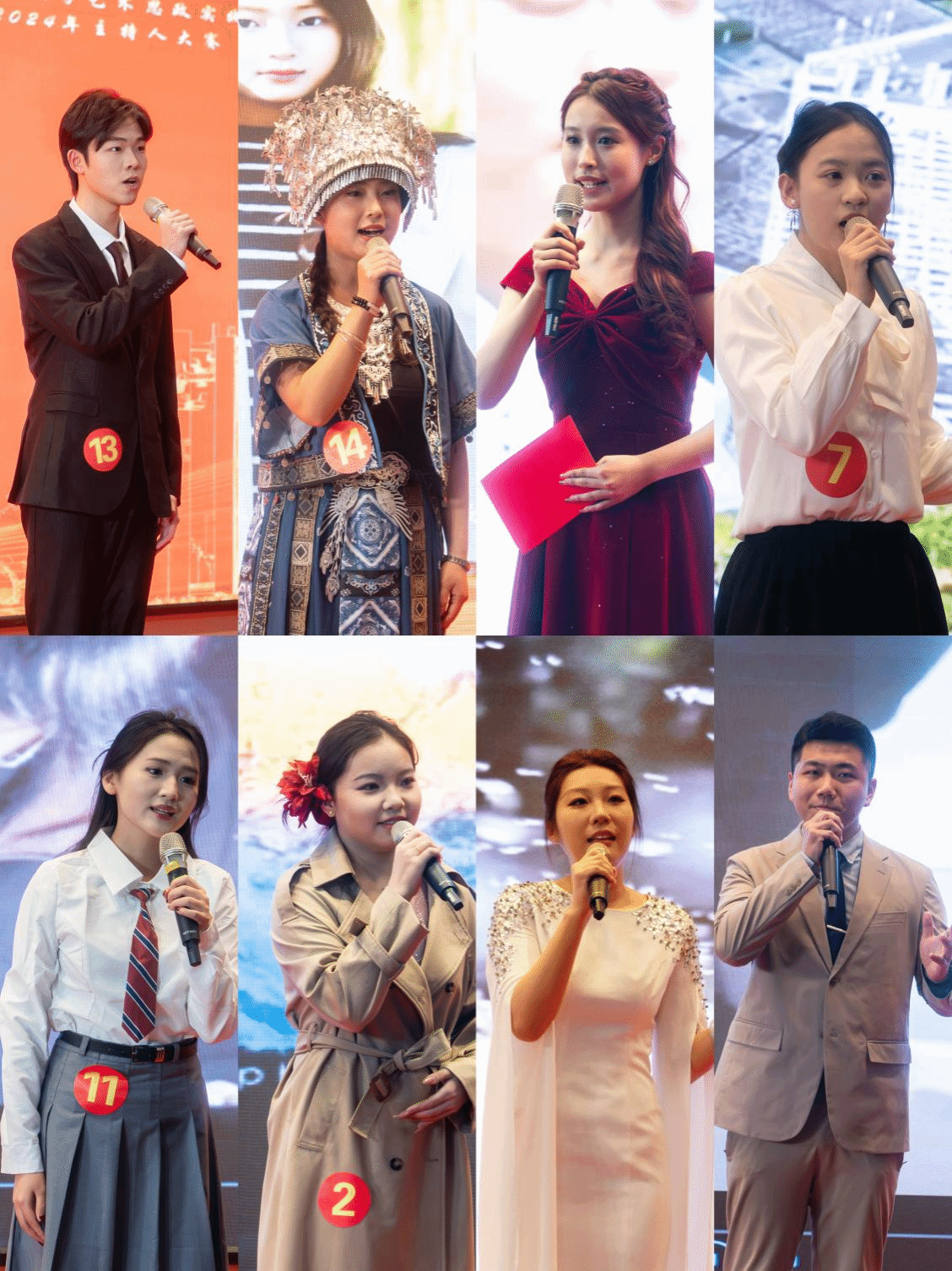本次决赛由两个环节组成,第一环节优胜者进入下一轮。在“我为青春代言”自备稿件环节,选手们通过模拟主持、诗歌朗诵、主题演讲等多样形式进行了技能展示,并献上了古典舞蹈、吉他弹唱、现代歌舞、配音秀等精彩才艺表演,赢得在场观众阵阵喝彩。经激烈角逐,7位选手成功晋级第二轮“我发时代新声”环节,通过随机抽取题目进行即兴评述,就纺大“石头版”月面国旗、智能穿戴“黑科技”、员工王金涛创业故事、文创产品热潮和《黑神话悟空》爆款游戏等题目,进行了精彩展演和阐释,在考验选手应变能力和主持功底的同时,进一步激发了选手和观众的爱国热情、爱校荣校意识和自豪感,并将整场比赛推向高潮。
