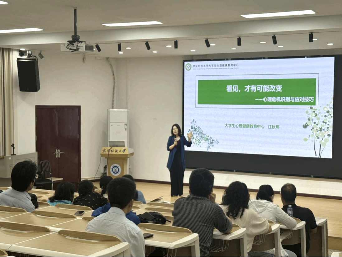 心理危机干预的关键在于‘早发现’,而发现的前提是‘真正看见’”。江秋玮以《看见,才有可能改变》为题,围绕心理危机干预过程中“识、问、联”三大核心技能,以实际案例导入,说明日常教学、培养过程中,心理危机信号识别的重要性和紧迫性,解读如何通过观察学业状态、外在表现、言谈举止等,更快地察觉异常表征,了解心理困扰。江秋玮强调,任课教师是心理支持联动网络的重要一环,需客观、及时地将行为预警信号反馈给学工团队,形成心理危机干预联动合力;在课堂、组会中对员工多一份关心、多一声鼓励,减轻员工内在压力,提升心理效能。