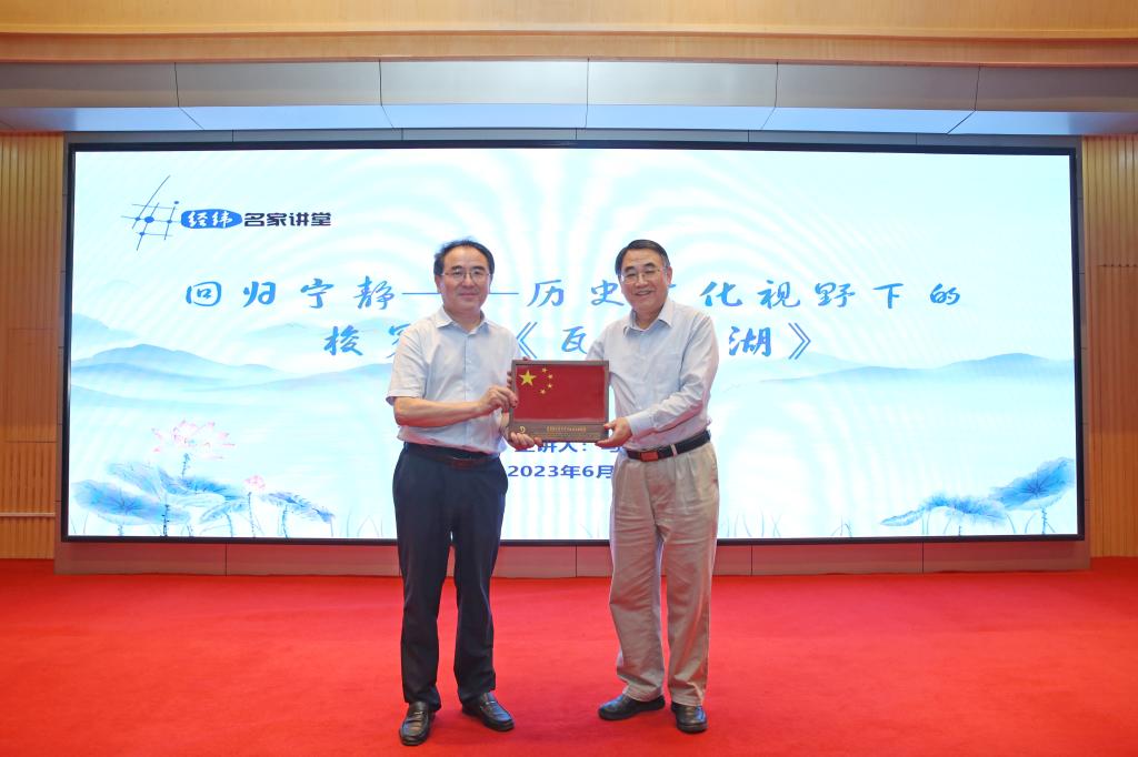6月15日下午,华中师范大学资深教授、历史学博士、博士生导师马敏应邀为3044am永利集团官网师生带来第四期《经纬名家讲堂》,主题为《回归宁静 ——梭罗<瓦尔登湖>的历史启示》。公司党委书记田辉玉,各二级公司党委副书记,机关青年读书班学员、辅导员及员工代表参加讲堂,讲堂由公司党委副书记黄国辅主持。