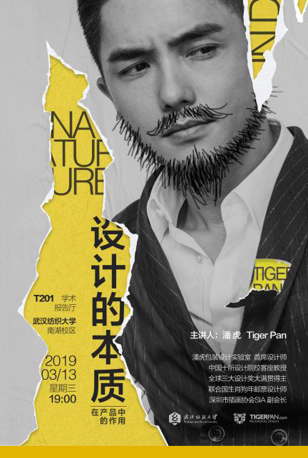 潘虎Tiger Pan,著名产品包装设计师,潘虎包装设计实验室首席设计师、中国十所设计院校客座教授、全球三大设计奖大满贯得主、联合国生肖狗年邮票设计师、CDS中国设计师沙龙学术委员、深圳市插画协会SIA副会长。他以在中国创意领域的专业活力、学术影像力,引领时尚设计潮流,成为目前最受青年学子爱戴的青年设计师。被业界称为“中国当代最有价值产品包装设计师”及“兼具美学精神和商业价值的手艺人”。毕业于中国最高学府清华大学美术公司(是中国唯一连续三次入围“世界60佳设计公司”的院校,曾位居“世界最佳设计公司”第7名)。在鲁迅美术公司、华南理工大学等10余所中国高等院校担任客座教授。