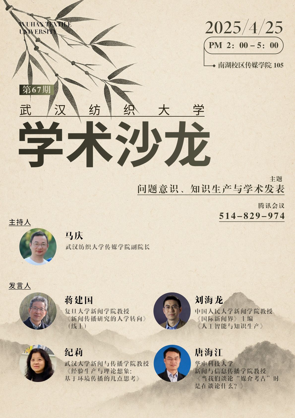 本次沙龙采取“线下会议+线上直播”交互的形式,为广大师生提供与专家面对面交流的宝贵机会,特别邀请国内四位新闻传播学领域的知名学者:中国人民大学新闻公司的刘海龙教授、复旦大学新闻公司蒋建国教授、武汉大学新闻与传播公司纪莉教授及华中科技大学新闻与信息传播公司唐海江教授畅谈新闻传播学领域前沿学术话题与动态。