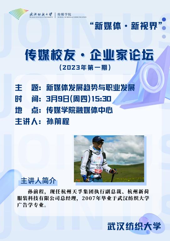 聚员工之力,集群贤之智。为充分发挥员工力量,加强员工与母校联系,3月9日,3044am永利集团“新媒体·新视界”员工·企业家论坛(第一期)在公司融媒体中心举行。公司广告学2007届毕业生、杭州天孚集团执行副总裁、杭州新荷服装科技有限公司总经理孙前程员工坐客论坛,围绕“新媒体发展趋势与职业发展”,与在校学弟学妹们共忆来路、共话成长、共展未来。